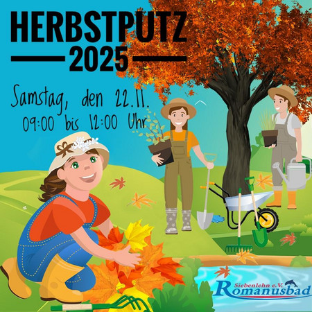 Wir freuen uns auf zahlreiche Helfer zum Herbstputz am Samstag, den 23.11.2024 von 9:00- 12:00 Uhr und wünschen einen guten und gesunden Start in die Adventszeit.